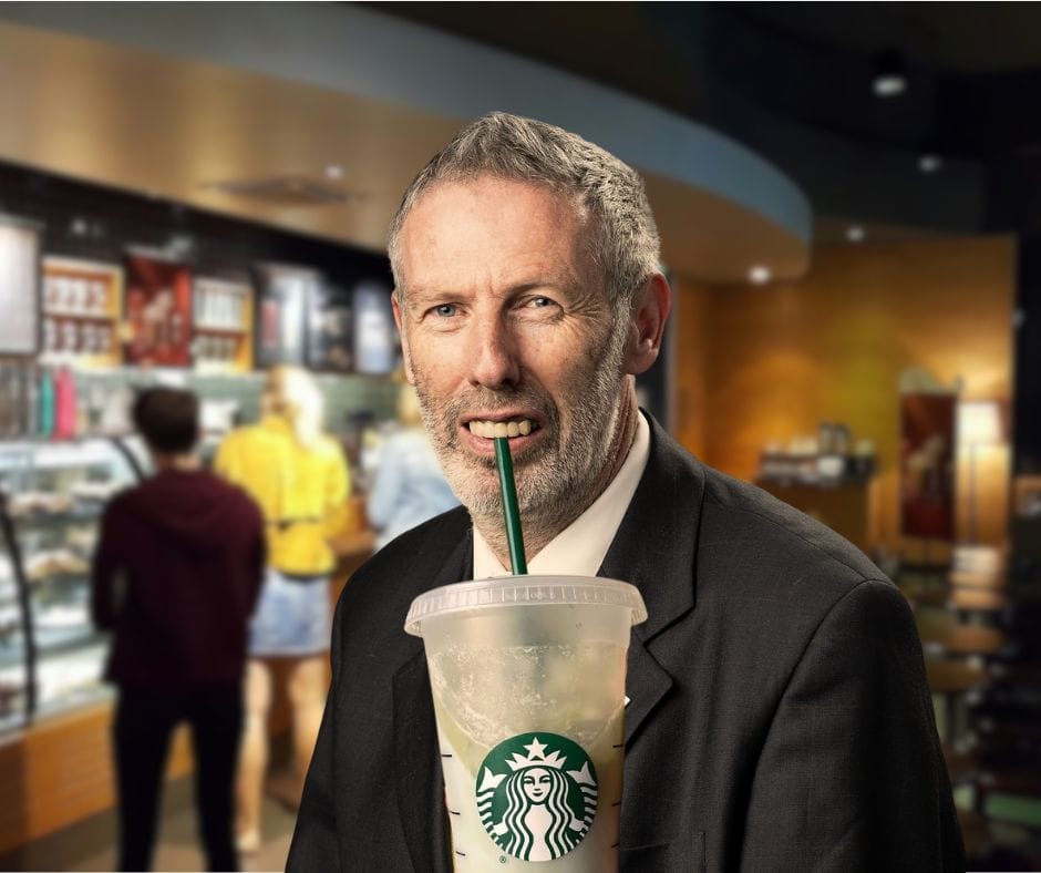 We wandelen naar de Starbucks in het station, waar Geert een Iced White Chocolate Mocha bestelt en betaalt met maaltijdcheques. Een uur lang staart hij ons aan terwijl hij luid van zijn mocha slurpt. Daarna bestelt hij er nog een. En nog een. Intussen is het 8 uur gepasseerd.