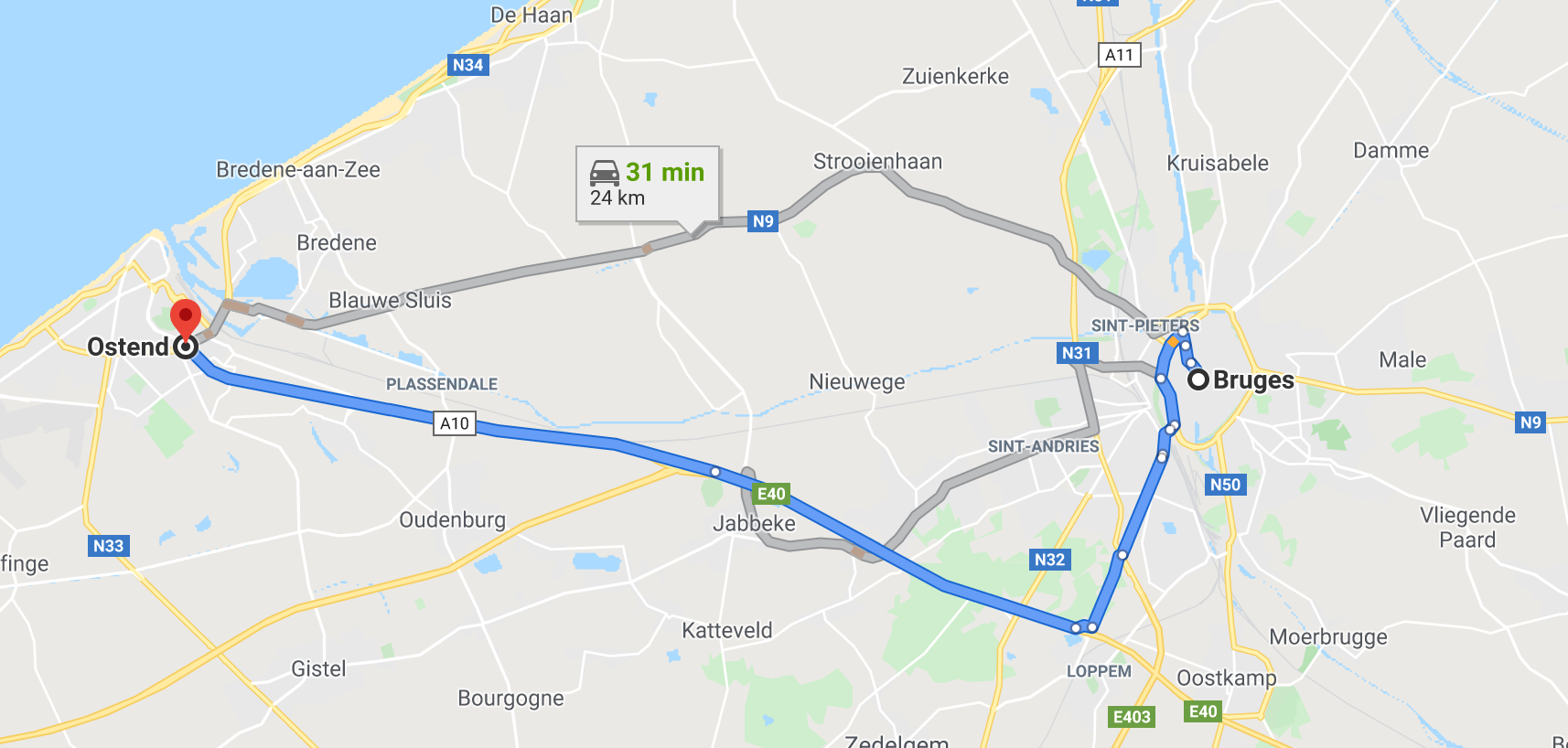 - Aan het rondpunt in Oostende, sla af naar het centrum, en klaar. Welkom in Oostende!