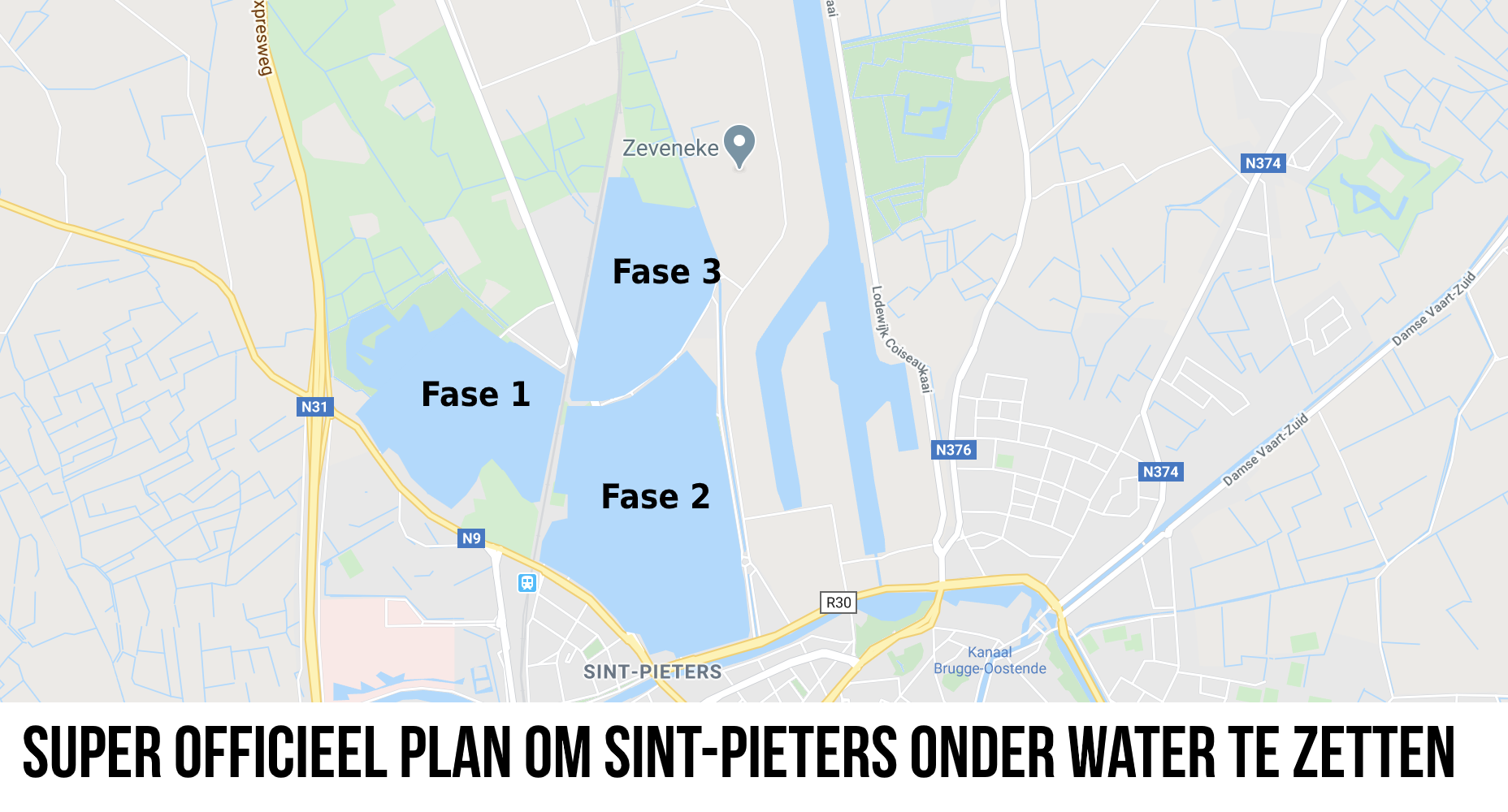 De stad zal nu een masterplan opstellen om de concrete invulling vorm te geven. "We willen niet overhaast te werk gaan", vertelt burgemeester De fauw (CD&V) ter plaatse aan De Brugse Stem, "het einddoel is wel duidelijk: een soort van Blaarmeersen in Brugge creëeren en Sint-Pieters onder het water doen verdwijnen. Dat zou leuk zijn om naar te snorkelen." Volgens historici zou het de Polders ook heel wat authentieker maken.