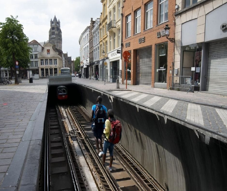 Omdat het over een tijdelijke oplossing gaat, heeft de stad beslist om kosten te sparen en geen grote tunnels te boren. "We hebben de sporen in een eigen bedding door de Steenstraat aangelegd. Deze ochtend hebben we trouwens al enkele proefritjes gedaan.We moesten de rit echter voortijdig afbreken omdat er toeristen in het midden van de sporen liepen."