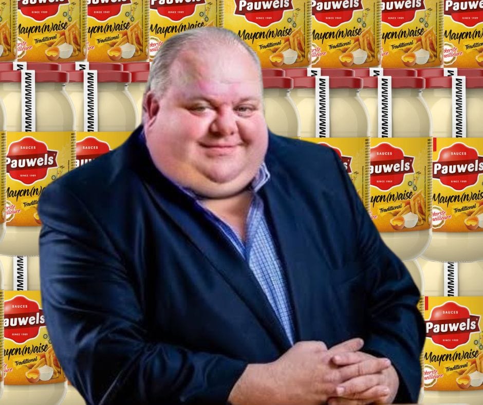 "Guy D'haeseleer kan niet functioneren zonder mayo. Voor onze partij was het echter van levensbelang dat we in Ninove het cordon konden doorbreken. Daarom is de partij systematisch mayonaise beginnen opkopen. Eerst zijn we in Maldegem langsgeweest. Daarna hebben we de rest van Oost-Vlaanderen leeggekocht. Daarna Antwerpen. In Limburg zijn we niet geweest, dat was te ver.