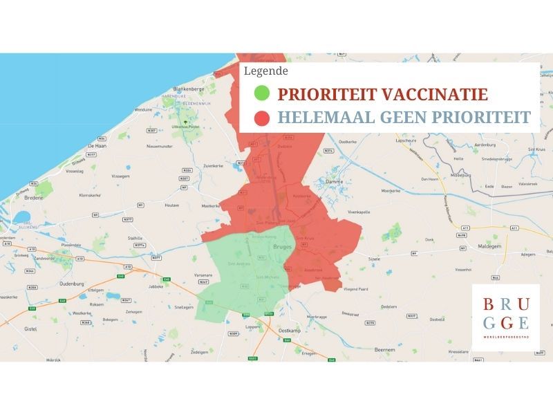 Op vraag van de Vlaamse regering heeft het Brugse stadsbestuur een vaccinatieplan opgesteld, dat ze vandaag voor de pers voorstelde. "Het is de bedoeling dat de villabuurten in Christus-Koning en Sint-Andries als eerste gevaccineerd worden, en de sociale woonwijken in Sint-Pieters, Koolkerke en Sint-Jozef als laatst", zo schetst burgemeester De fauw. "Na een uitgebreid overleg op de jacht van één van de bewoners van Christus-Koning, zijn we overeengekomen om het zo te doen."